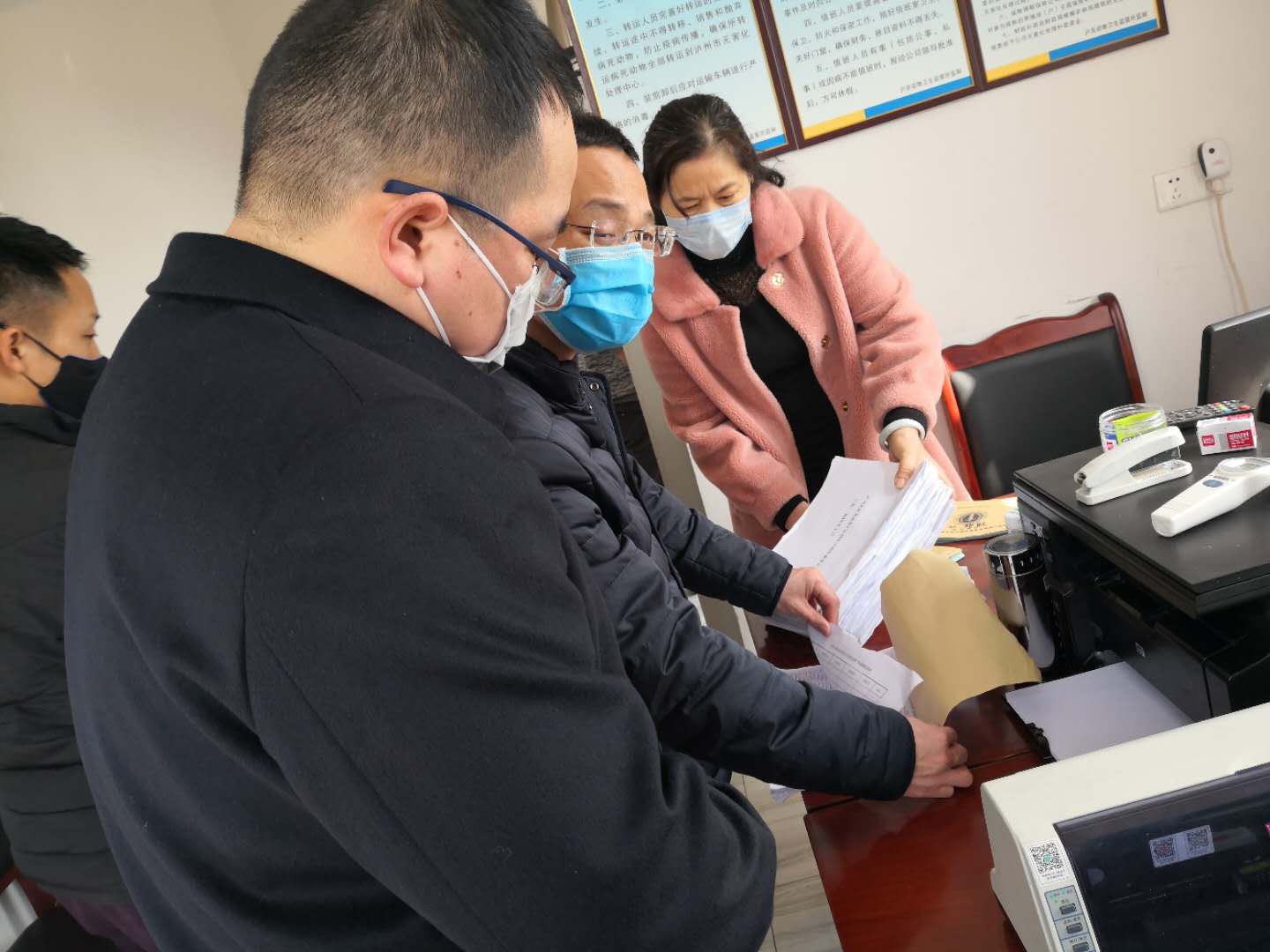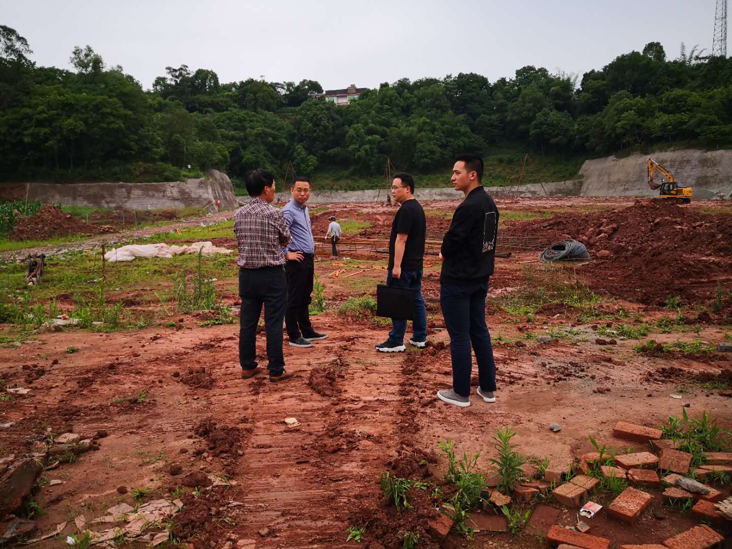 县检察院到某在建养猪场调查侵占基本农田情况。
