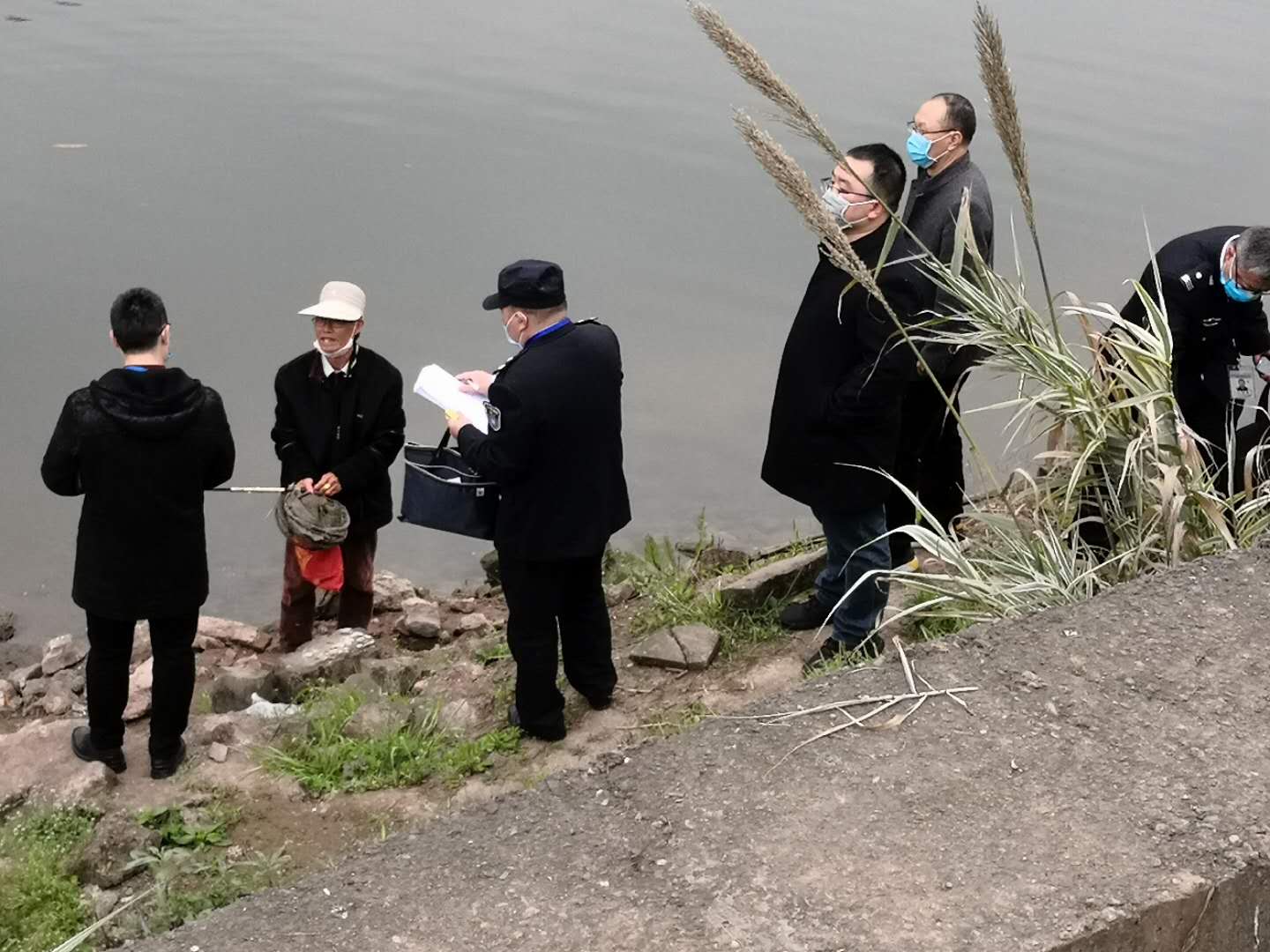 县检察院同县农林局对濑溪河流域禁鱼情况进行检查。